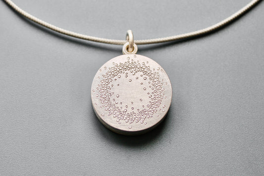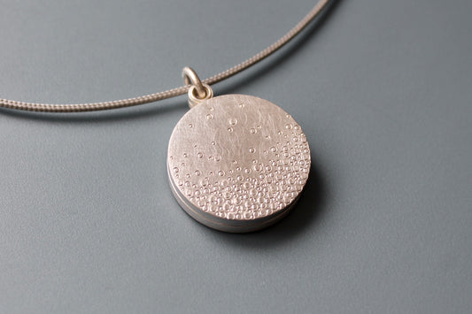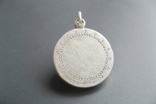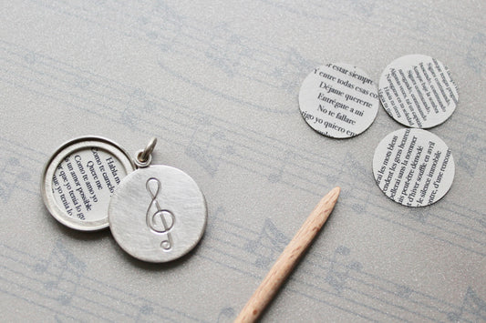 secret message locket filled with silver letter plates, a tiny feather and a golden heart