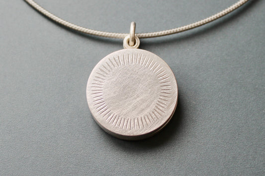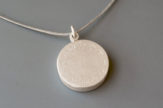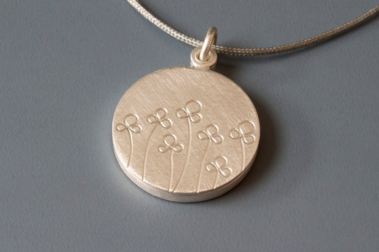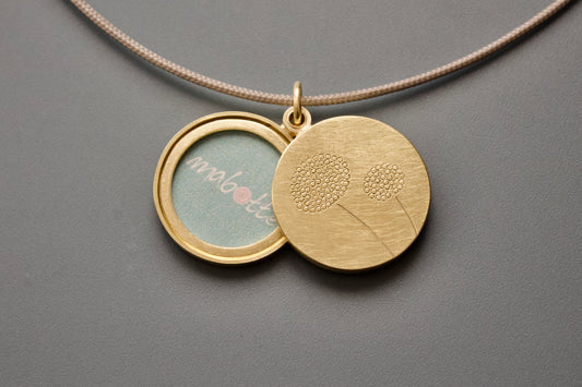 elegant floating locket filled with forget-me-not-seeds in sterling silver with dandelions design