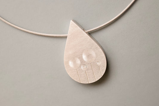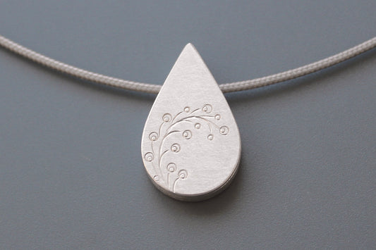 personalisiertes Glasmedaillon in Tropfenform Sterling Silber mit Pusteblumen