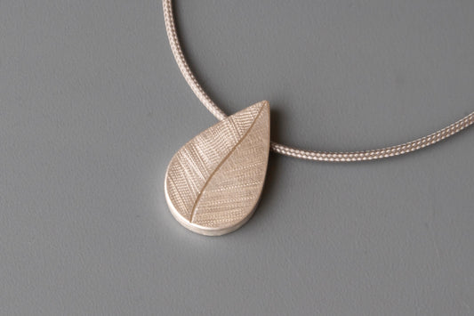 elegantes Fotomedaillon in Tropfenform mit Blattmotiv aus Sterling Silber