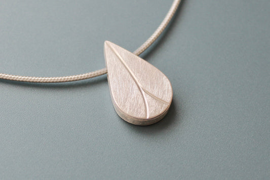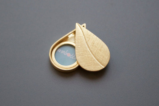 einzigartiges Silbermedaillon für ein Foto in Tropfenform mit Blattmotiv