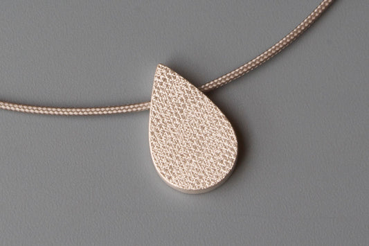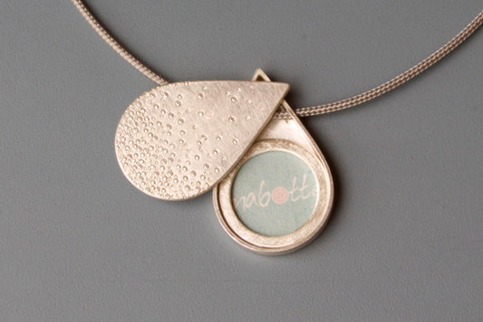 einzigartiges Fotomedaillon in Tropfenform aus Sterling Silber mit strukturierter Oberfläche