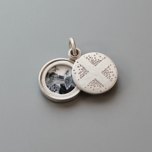 modernes Medaillon für zwei kleine Fotos mit strukturierter Oberfläche aus Sterling Silber