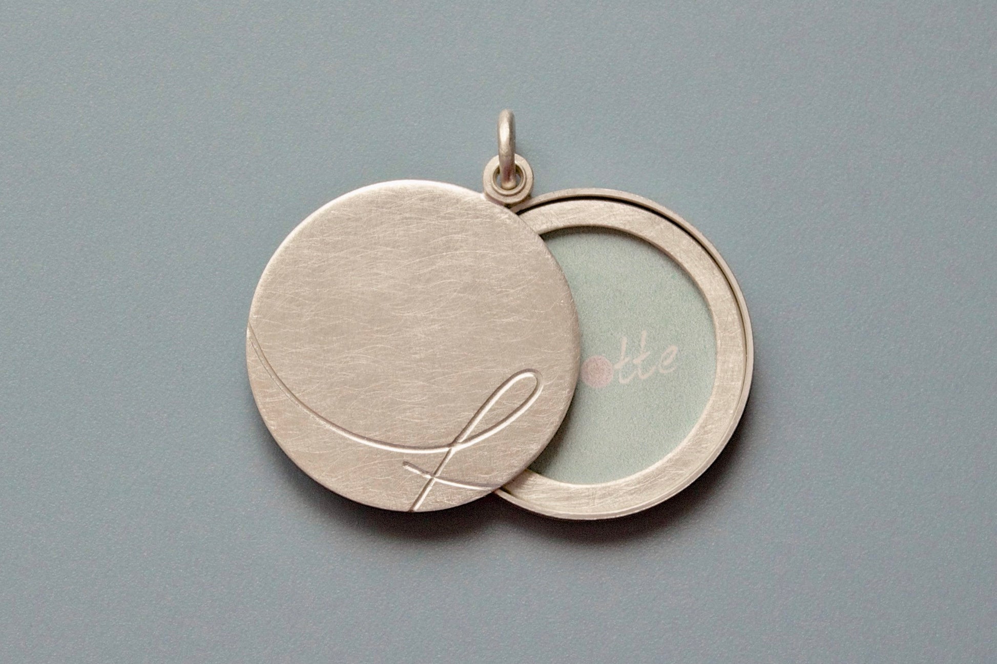 Medaillon für ein Foto - Durchmesser: 26mm - Höhe ca. 3,5mm - Motiv: Initiale - 925/000 Silber