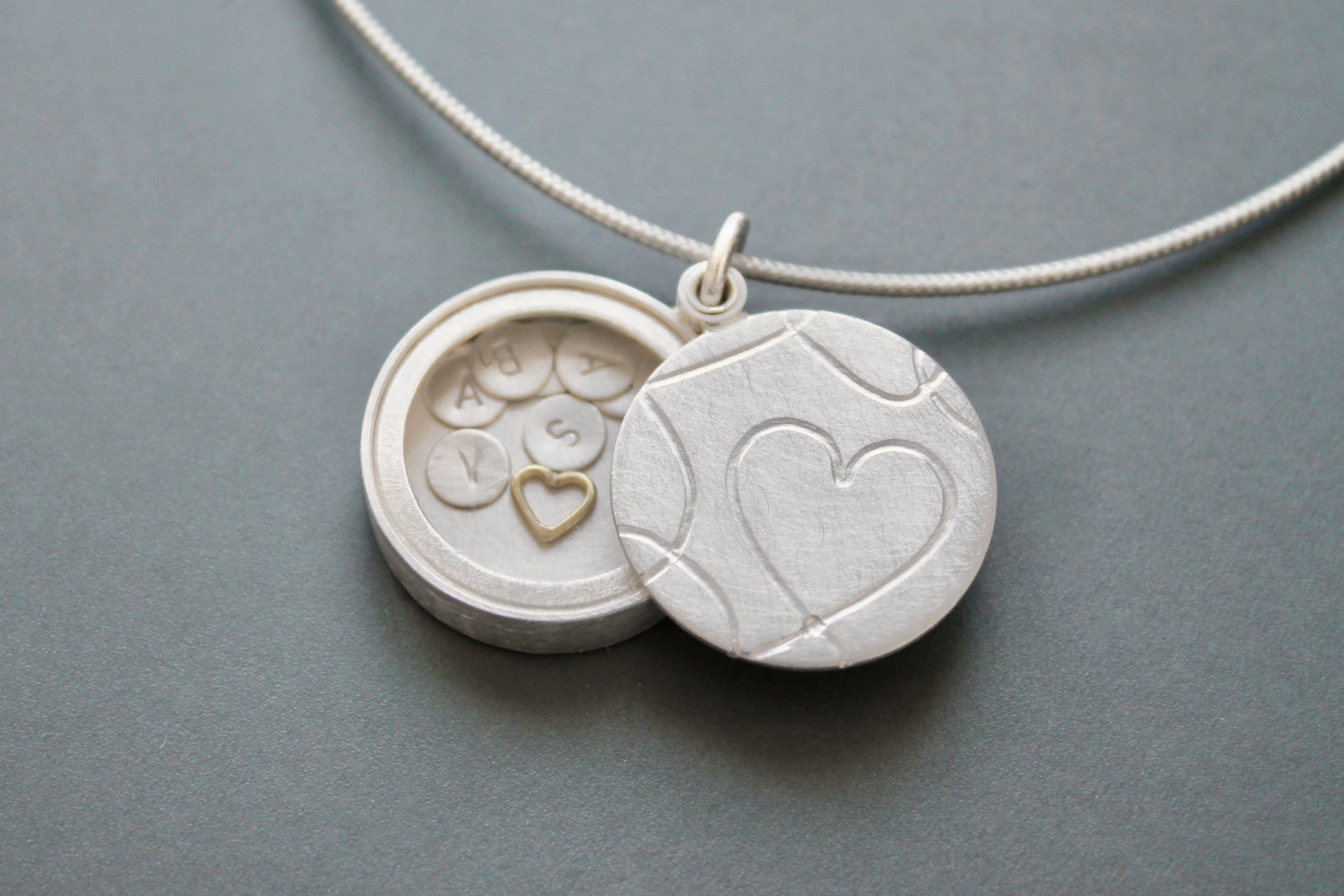 RESERVIERT für C.M.: Glasmedaillon, 22mm, Schwungvolles Herz, mit Perlen und Herz, 925/000Ag