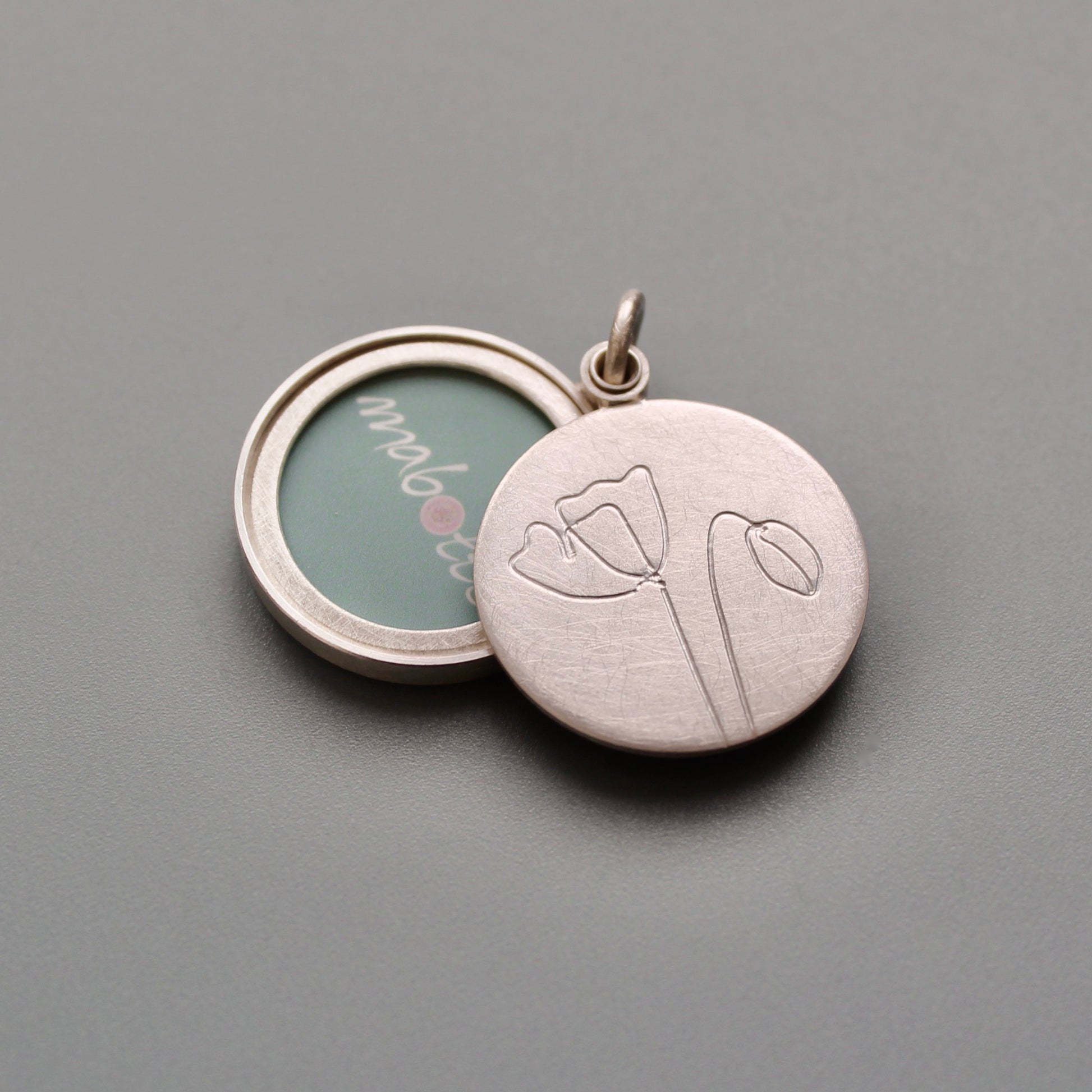 RESERVIERT für S.H.: Medaillon für ein Foto, Durchmesser 22mm, Mohnblumen, 925/000Ag