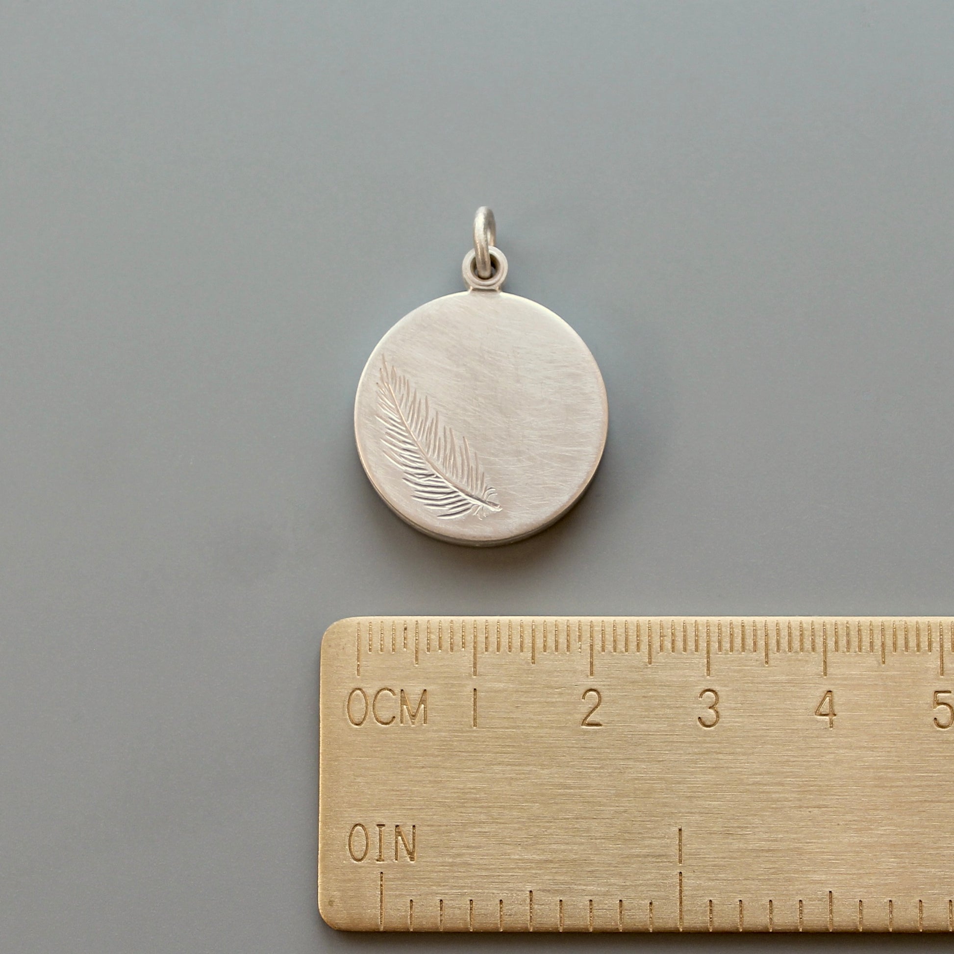 Locket for one picture - diameter 22mm (0,86") - thickness: ca. 3,5mm (0,13“) - design: feather - Sterling Silver